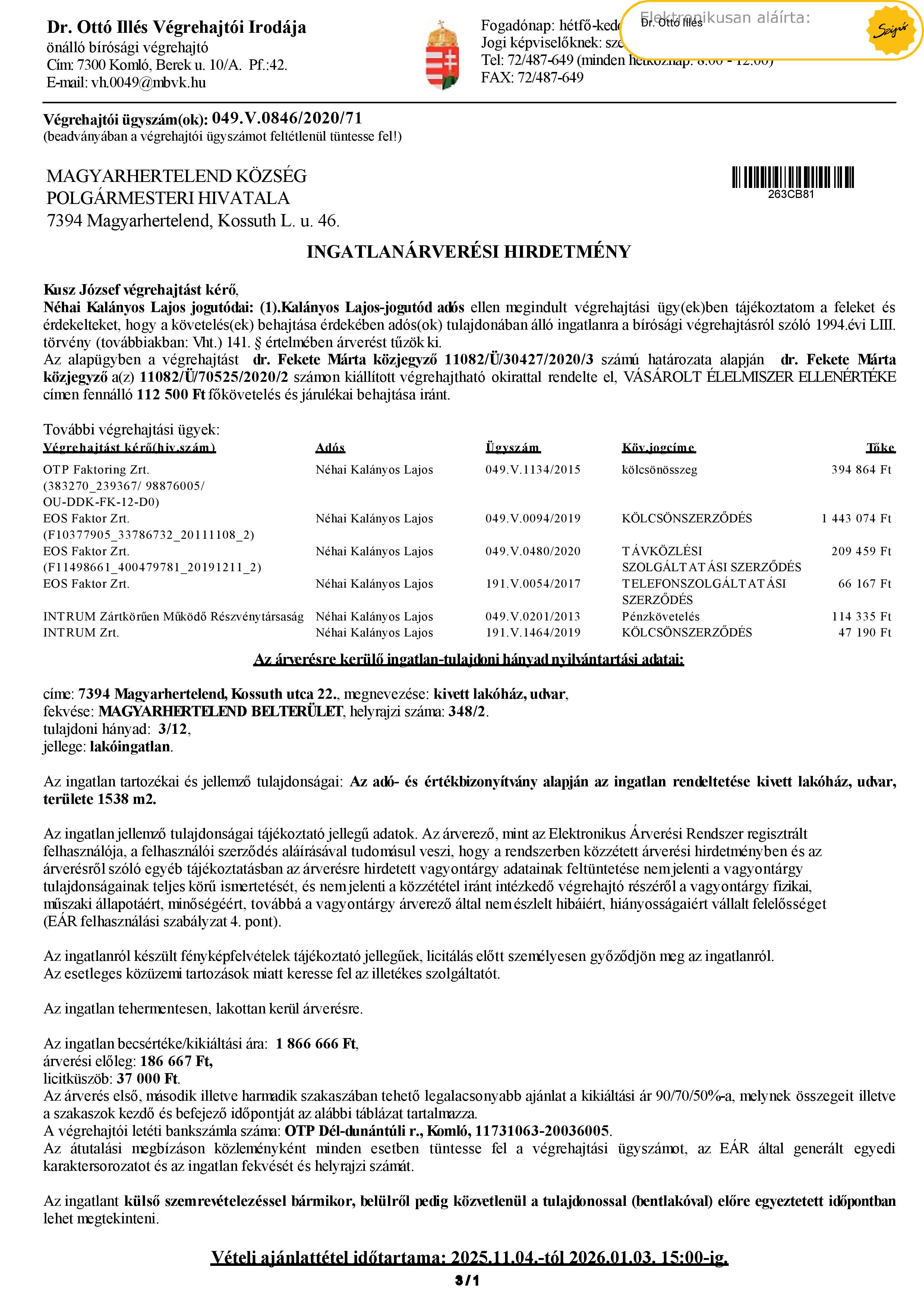 VJP 2025 - Közös Önkormányzati Hivatal működési költségei