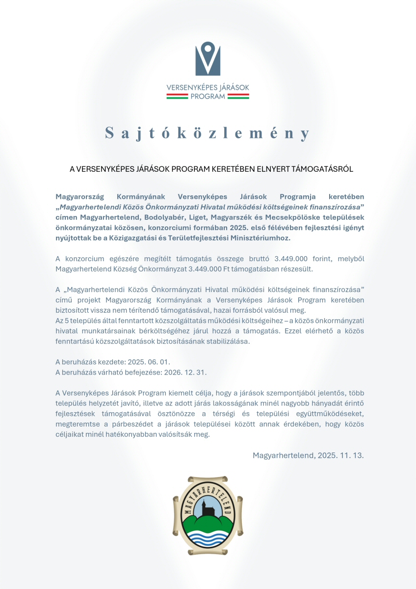 VJP 2025 - Magyarhertelendi Közös Önkormányzati Hivatal működési költségeinek finanszírozása